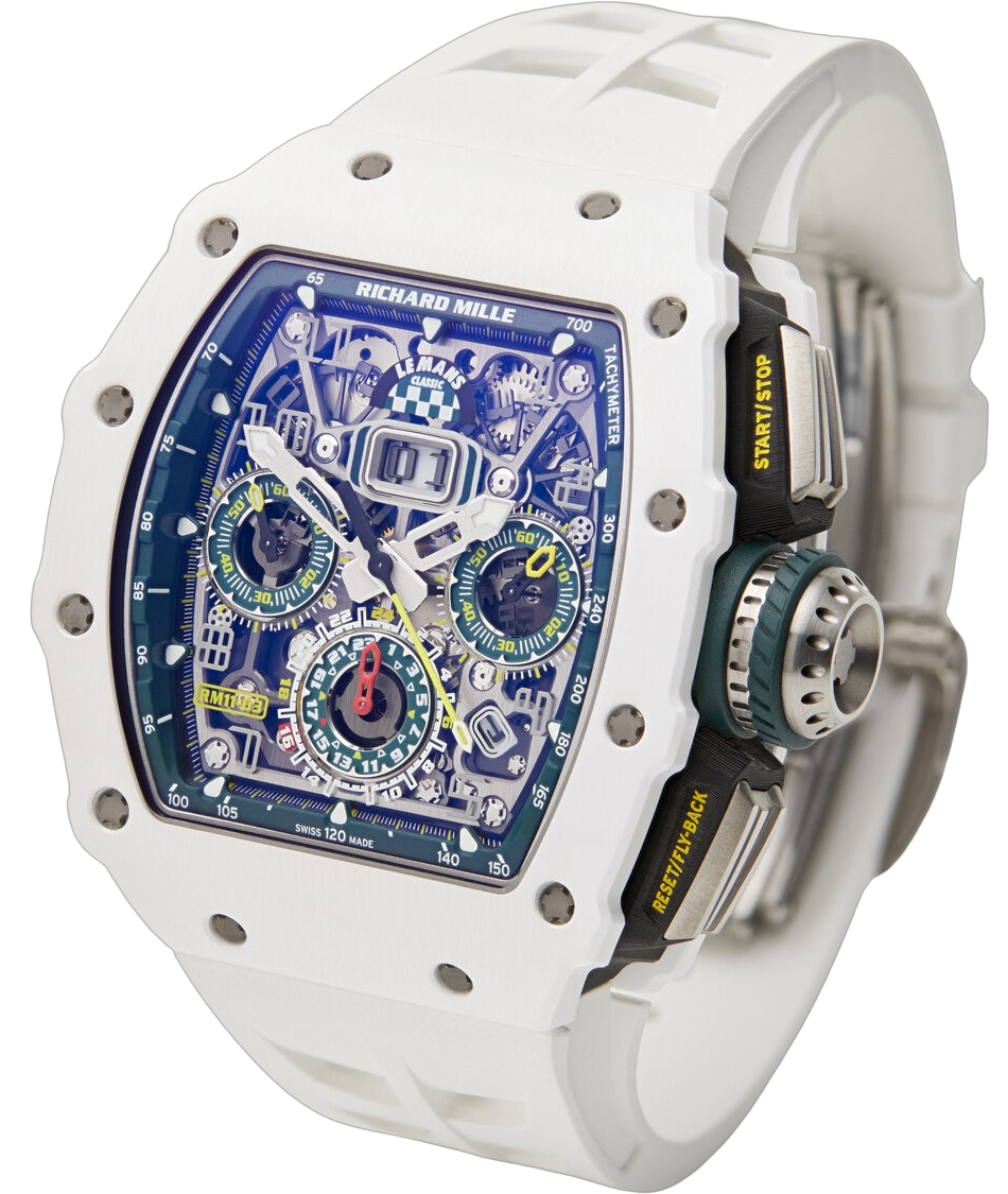 Basic Info Brand Richard Mille Model RM11-03 Reference number RM11-03 Movement Automatic Case material White Ceramic Bracelet material Rubber ...